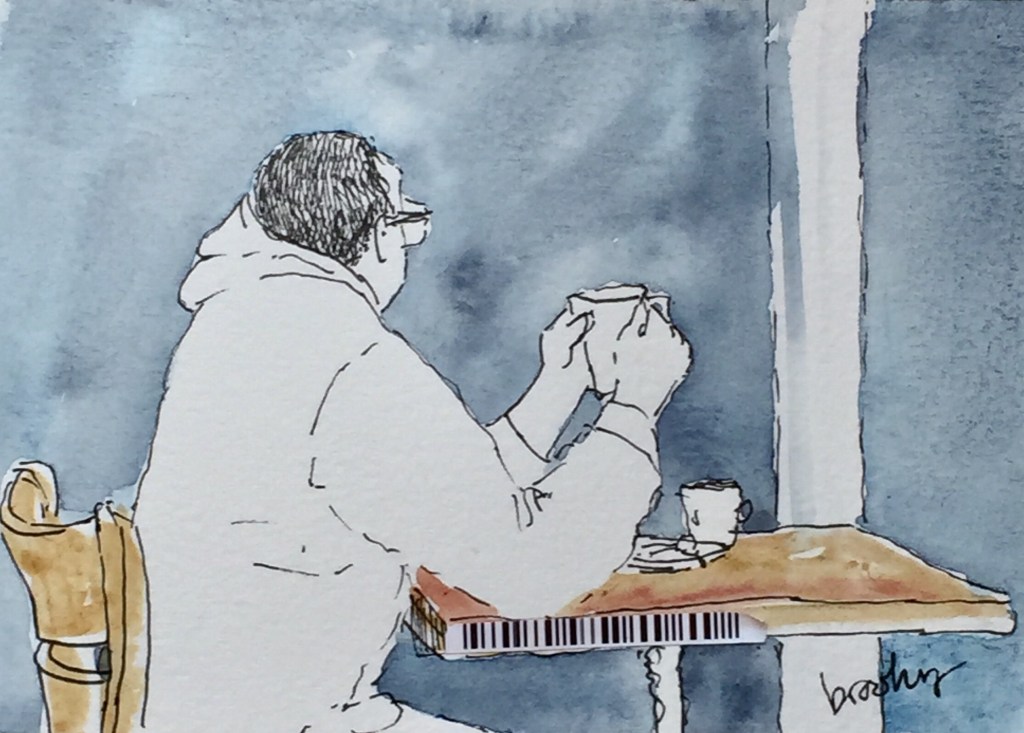 n 41 Café La Marquise – 10x15cm ink, watercolor, collage on Arches paper
