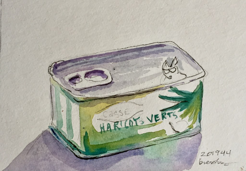 Why am I telling you this? Because on my lunch break I go to the grocery store cafe and draw stuff. Thus haricots verts in a box.