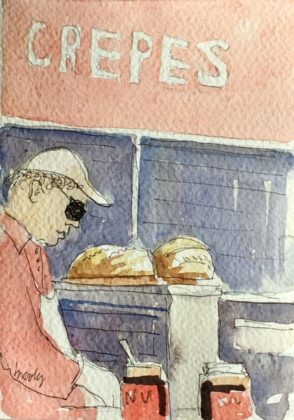 The Crèpeman is a super hero saving starving school children whose stomachs rumble at 4PM when the school bell rings. The crèpeman is wonder man, the school kids save him with thei growling guts because the tourists didn’t come to Mouffetard in 2020.
