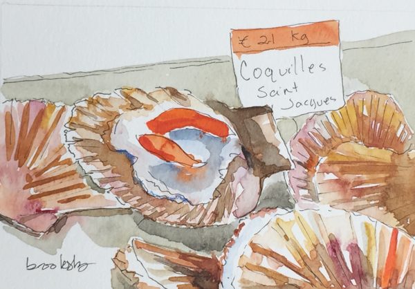 The fishmonger on Mouffetard doesn’t seem to mind me standing around and drawing these.