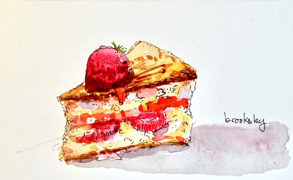 Buy this for 25 euro on Daily Paint Works see many more original postcard sized illustrations of French delicacies by Angie Brooksby-Arcangioli