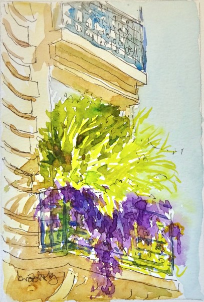 Buy this one of a kind, original watercolour and pen and ink for 25 euro on Angie’s online shop at Daily Paint Works. Available are more original postcard sized illustrations of Paris and French pastries, and the French Riviera. Free shipping pin Europe and North America. Sent with signature required registered mail.