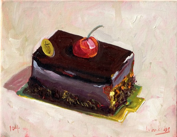 From an exhibition that I had in a restaurant in Paris. I painted 100 small format paintings of French Gourmandises and hired the restaurant. 54 sold on the first night. I had worked for 3 months to prepare them and blogged one everyday. A few people who came to the opening were scandalised by me selling 54 little paintings in one night for 100 euro each.