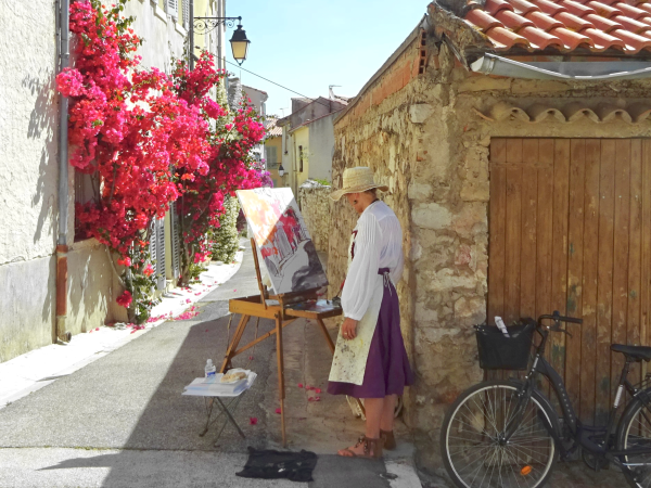 Then I left Paris for the French Riviera. And bought the Galerie Massillon in Hyères, (thanks Mom!) It is now my painting studio. The vegetation in Hyères is Mediterranean. The flowers are out of this world. Bougainvillea, jasmine, orange blossoms, cascading rose bushes of all colors, cactus flowers. I am inspired! I paint plein air to feel the wind in my hair and study the blossoms.