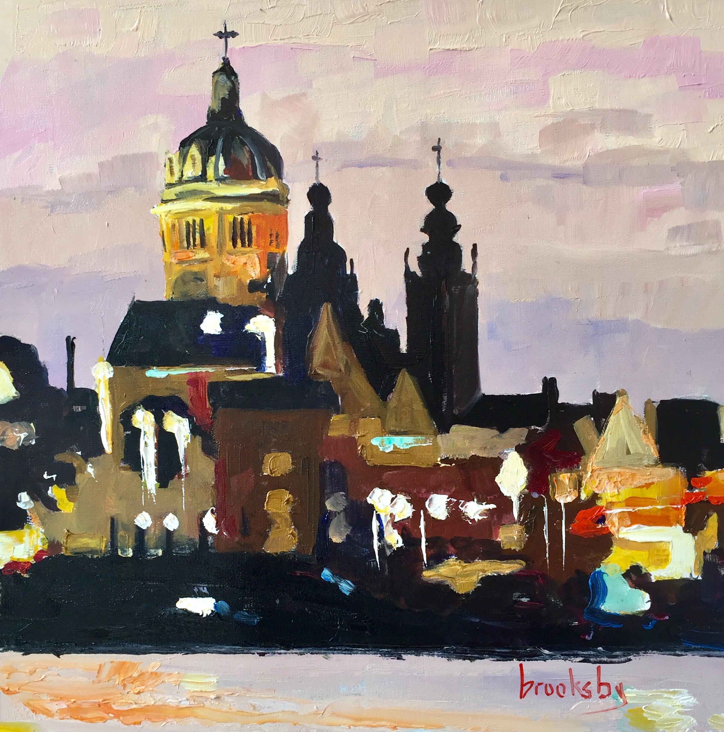 Angie Brooksby was born in New York in 1965. She lives in Hyères, France where she paints in different styles. abstract landscapes, with gold leaf, watercolor, and oil plein air paintings of the French Riviera. After obtaining her diploma in Sculpture at M.I.C.A. she moved to Italy in 1990 and painted plein air landscapes for 21 years. The she moved to Paris in 2007 where she painted urban scenes. She is also a gong player and a Biofield Tuning Practitioner