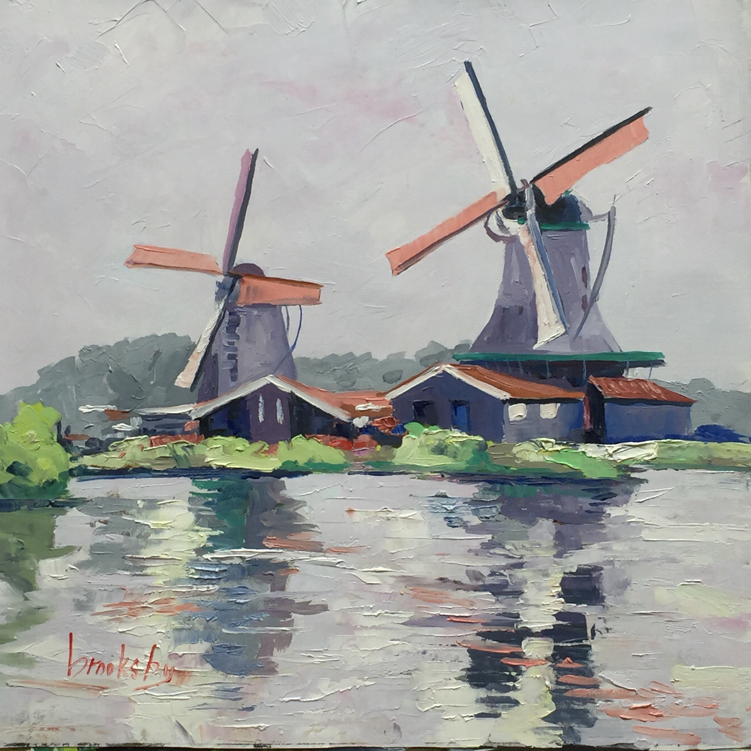 Angie Brooksby was born in New York in 1965. She lives in Hyères, France where she paints in different styles. abstract landscapes, with gold leaf, watercolor, and oil plein air paintings of the French Riviera. After obtaining her diploma in Sculpture at M.I.C.A. she moved to Italy in 1990 and painted plein air landscapes for 21 years. The she moved to Paris in 2007 where she painted urban scenes. She is also a gong player and a Biofield Tuning Practitioner